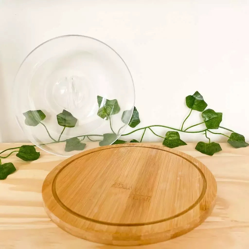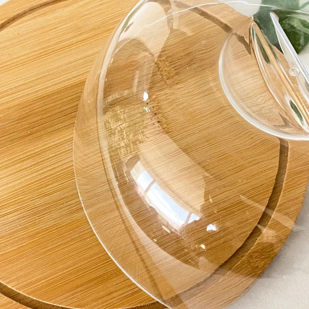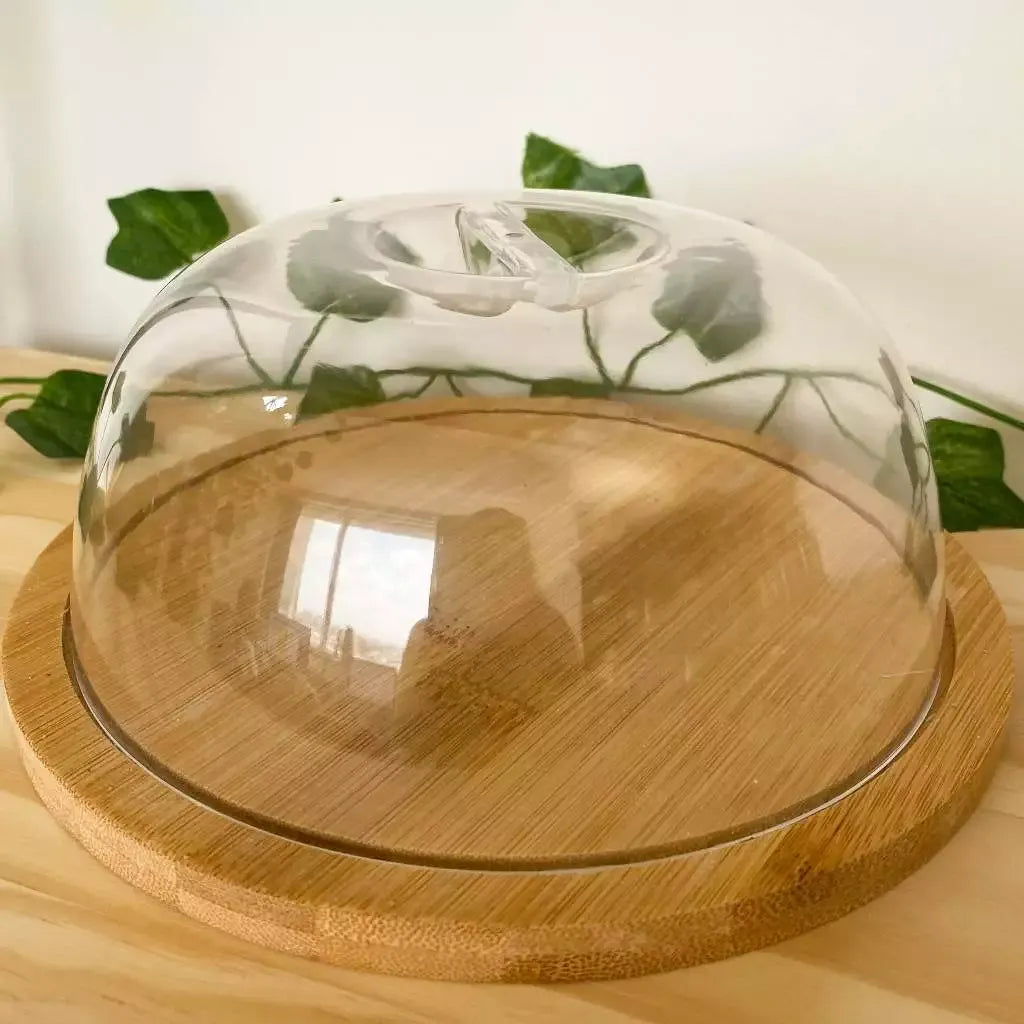 Porta Queijo Bambu com Tampa Acrílico Multiuso